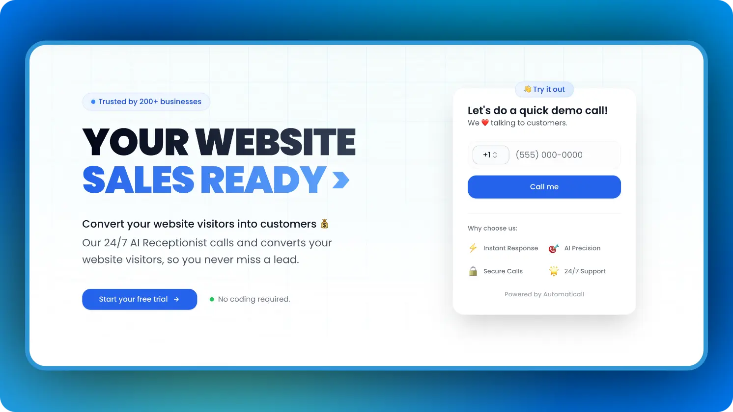 Join businesses in 28 countries who've elevated their customer engagement with our AI-powered phone call widgets.